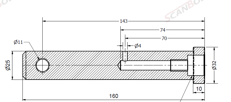 Bolt Ø25x160L m. smøring & låsehul