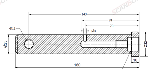 Ø25x160L m. smøring & låsehul