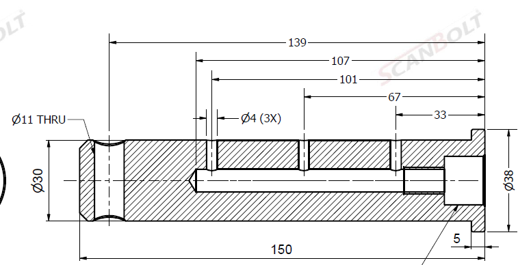 Robust hærdet stålbolt/aksel i høj kvalitet, velegnet til entreprenørmaskiner og andre krævende opgaver, hvor der stilles store krav til styrke og holdbarhed. Bolten er fremstillet i hærdet stål, hvilket giver en slidstærk overflade og lang levetid – også under hård belastning.