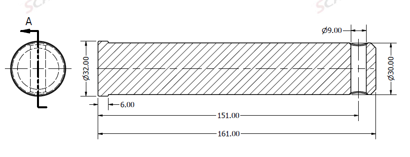 Ø30x161L u. smøring m. centerhul