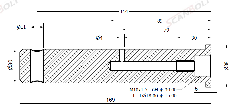 Bolt Ø30x169L m. smøring