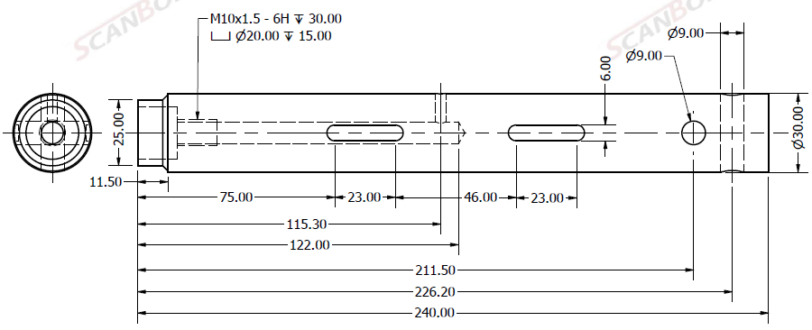 Robust hærdet stålbolt/aksel i høj kvalitet, velegnet til entreprenørmaskiner og andre krævende opgaver, hvor der stilles store krav til styrke og holdbarhed. Bolten er fremstillet i hærdet stål, hvilket giver en slidstærk overflade og lang levetid – også under hård belastning.