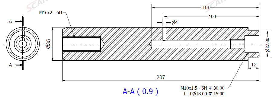 Ø35x207L m. smøring & u. låsehul