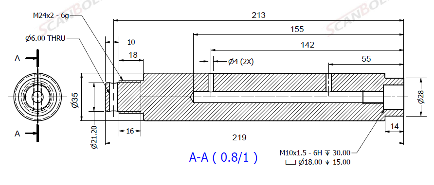 Bolt Ø35x219L m. smøring & låsehul