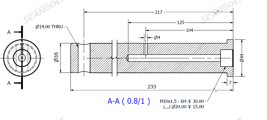 Bolt Ø35x233L m. smøring & låsehul