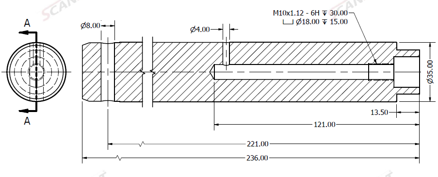 Bolt Ø35x236L m. smøring & låsehul