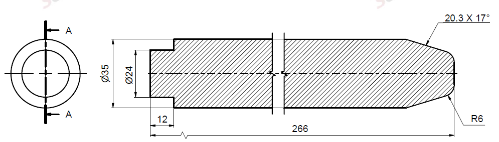 Ø35x266L u. smøring & u. låsehul