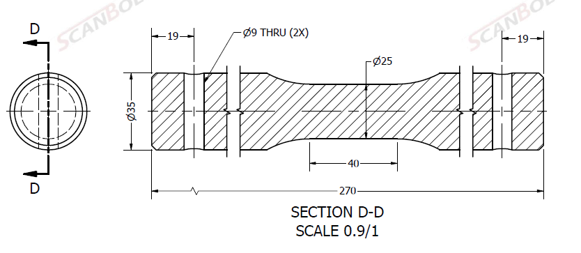 Bolt Ø35x270L u. smøring & m. låsehul