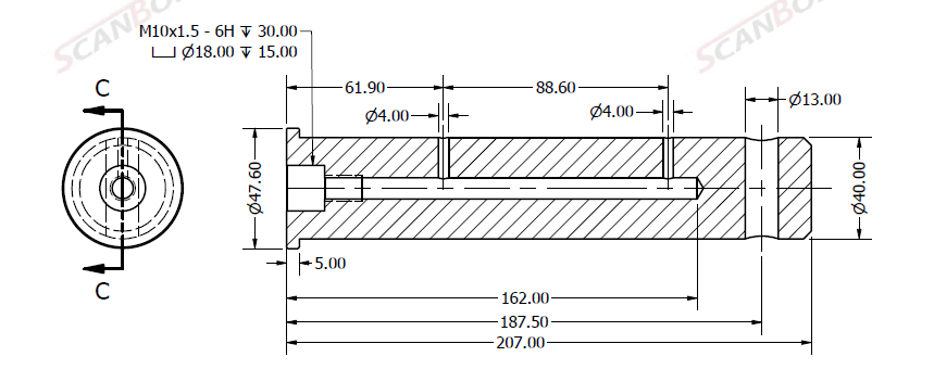 Bolt Ø40x207 m. smøring & låsehul