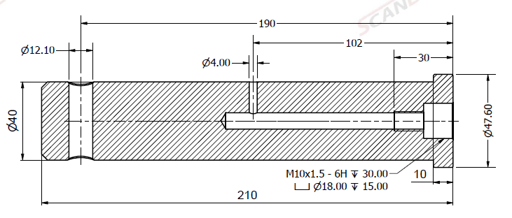 Bolt Ø40x210L m. smøring & låsehul
