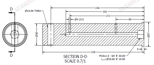 Bolt Ø50x235L m. smøring & låsehul